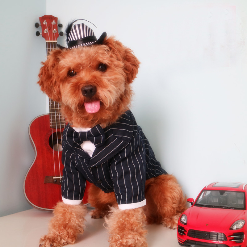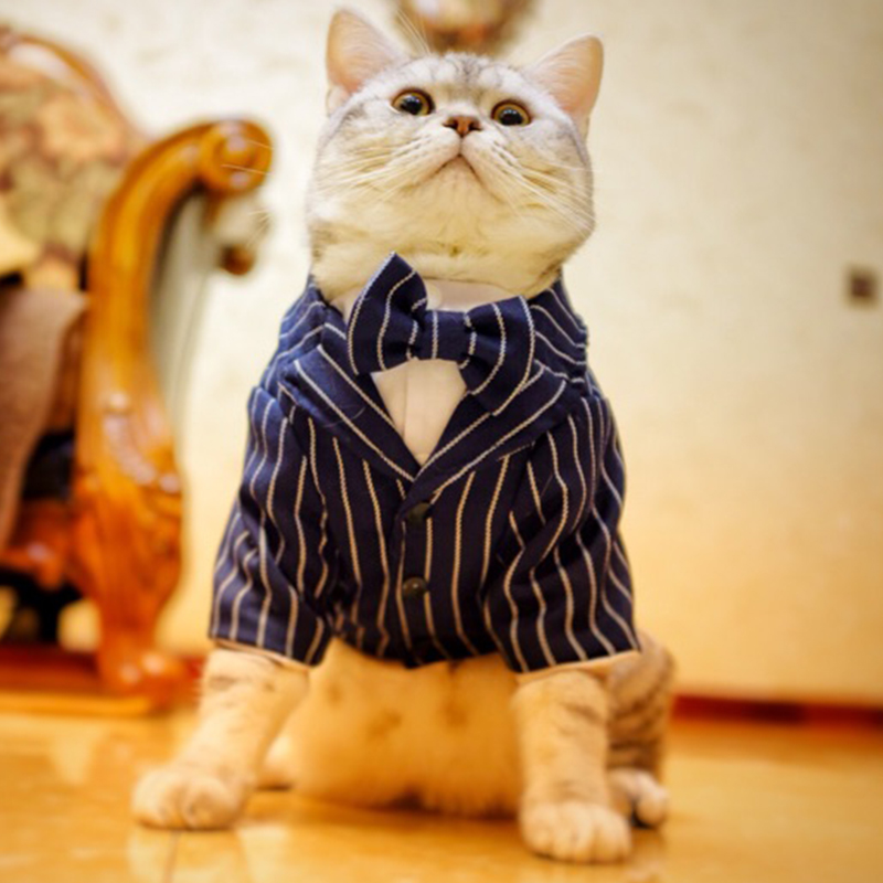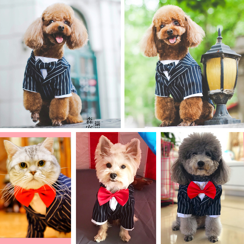 Dog Male Cat Wedding Suit Dress Teddy Bichon Falcon Dog Pet Gentleman Bow Tie Shirt Striped Clothes