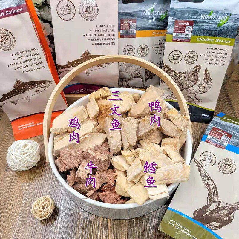 Huoda natural pure broiler chicken duck beef salmon cod freeze-dried dog snacks pet training reward nutrition delicious