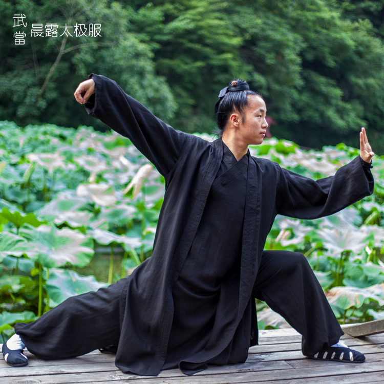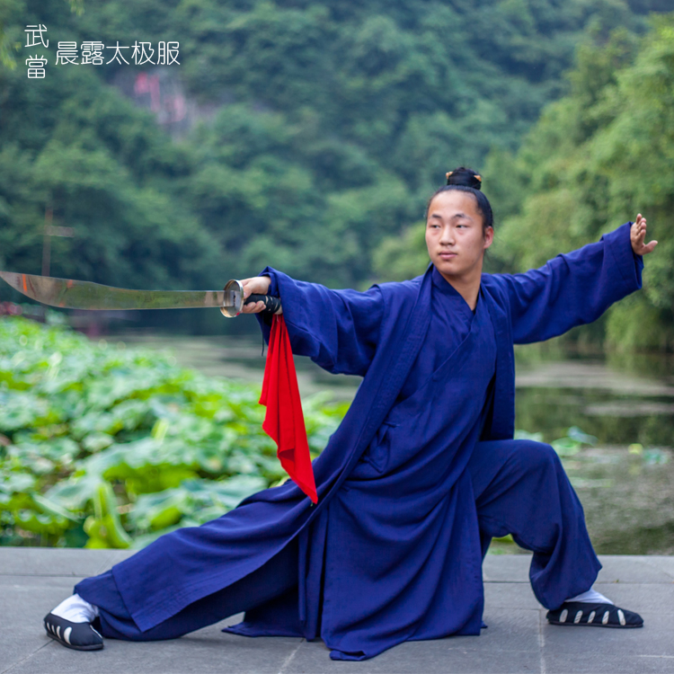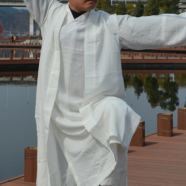 Wudang Taoist robe three-piece set linen Tai Chi clothing martial arts clothing long gown Taoist clothing slanted lapel layman clothing for men and women