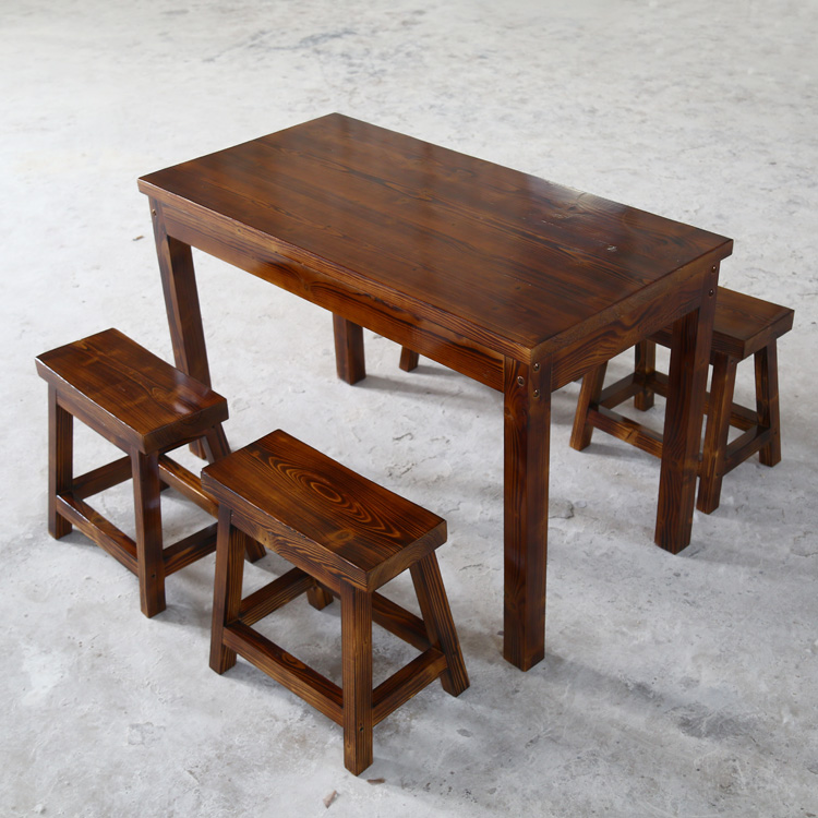 Solid Wood Hotel Noodle Restaurant Dining Table And Chairs Group Full Chinese Fast Dining Room Dining Table And Chairs Leisure Farm Fields Garden Retro Restaurant Table And Chairs