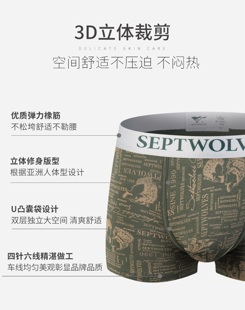 Seven Wolves Men's Underwear Ice Silk Four Corners Earth Flat Corner Meat Fall Underwear Wearing Modale Fabric Underpants Underpants