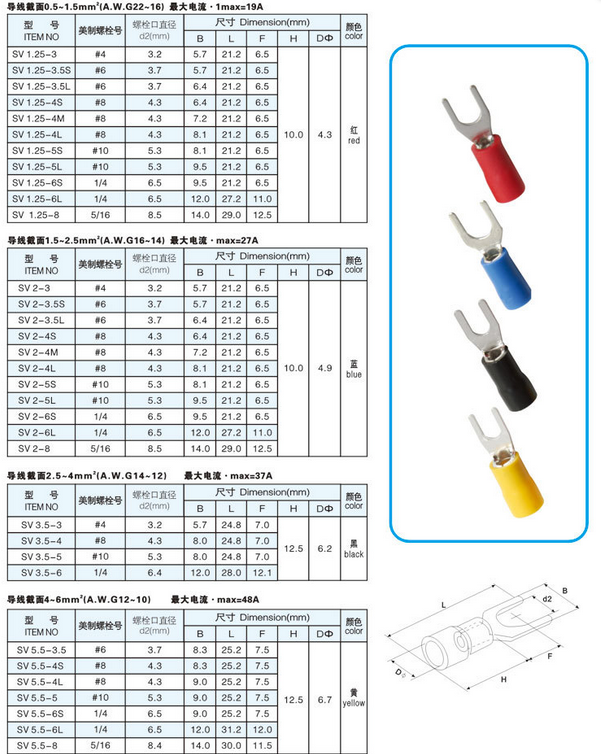 SV1 25-4s Fork insulated terminal Y type 0 5-1 5 square wire cold-pressed connector Copper lug 1000pcs