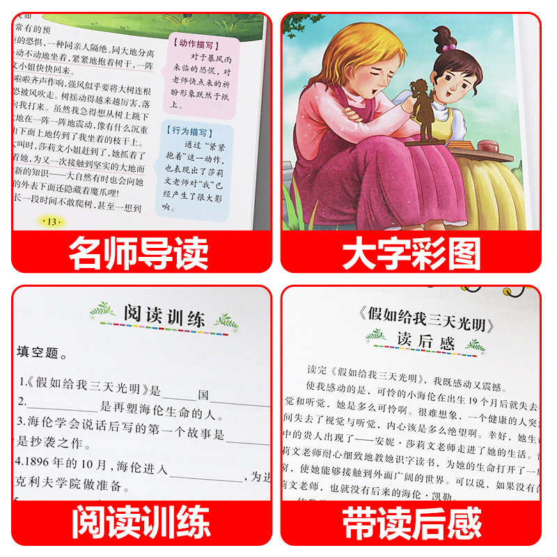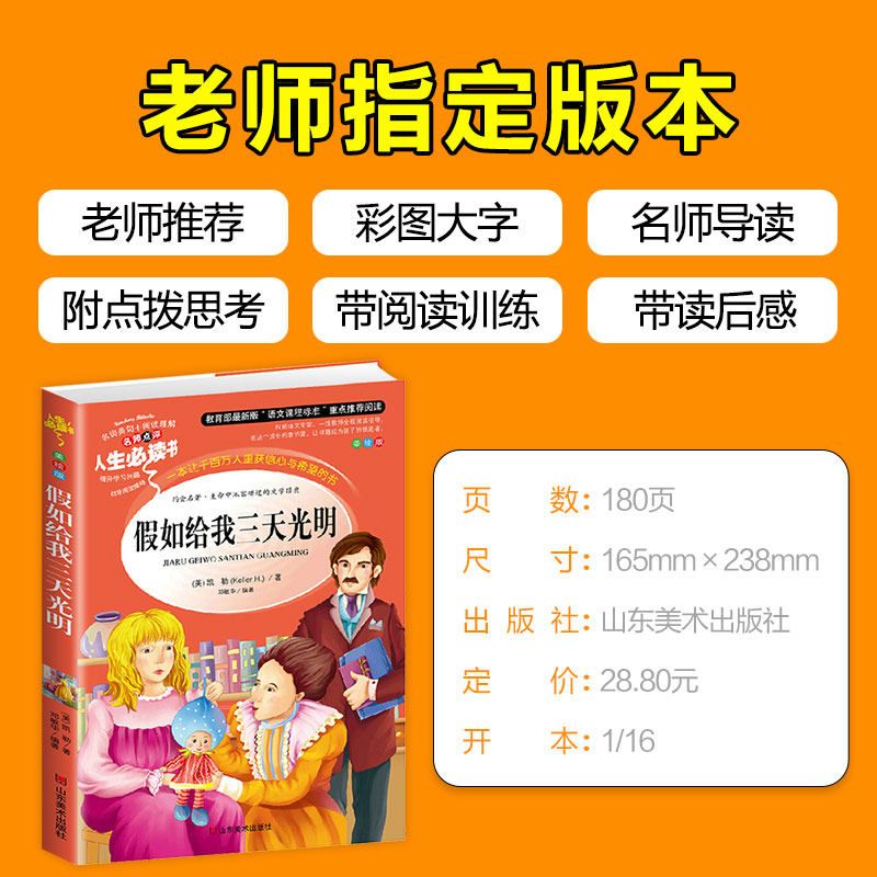 If you give me three days of bright genuine beautiful painted color pattern version barrier-free reading primary and secondary school students youth version of the language famous three-four-five-sixth grade extracurricular books must-read children's literature books Helen Keller