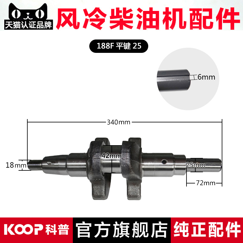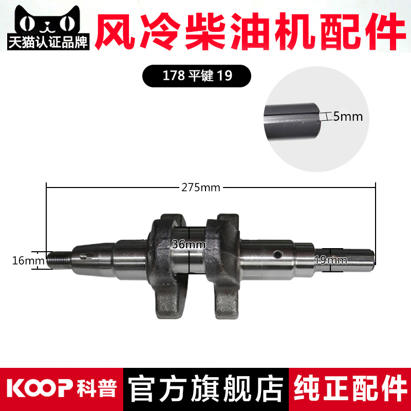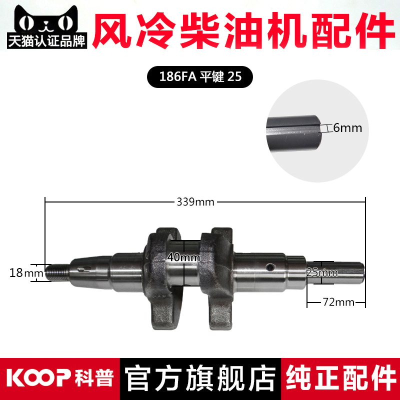 Air-cooled single-cylinder diesel engine cutting machine pump accessories 178F 186FA 188F flat key crankshaft