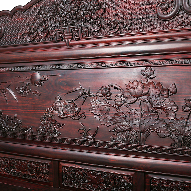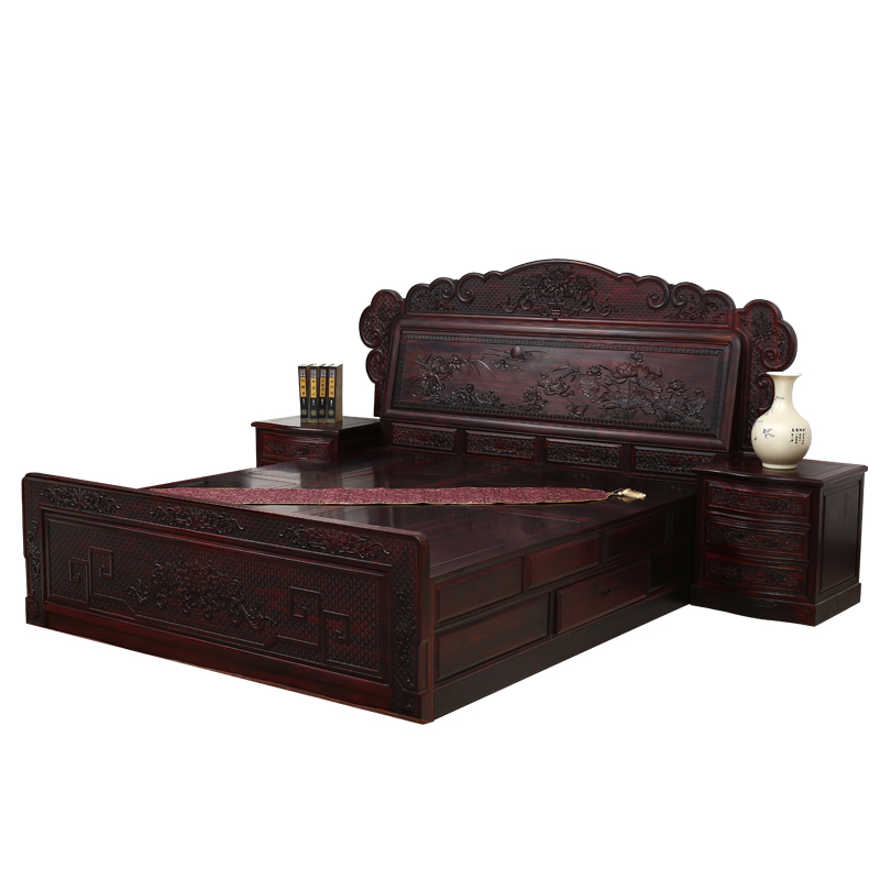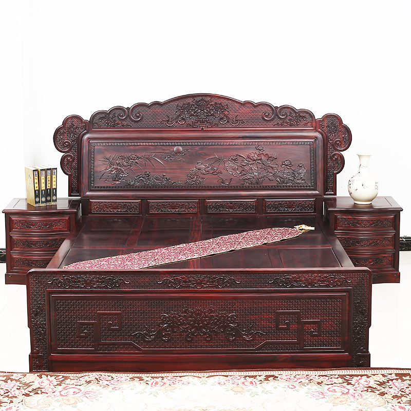 Dongyang mahogany furniture bed national standard Indonesian black acid branch broad-leaved yellow sandalwood 1 8 meters double solid wood wedding bed carving