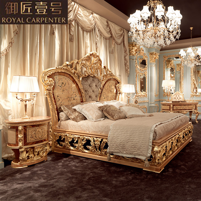 Carpenter One European-style villa Home innate solid wood Carved Bed Soft Leaning Large Terrace Number main bed 1 8 m Double beds