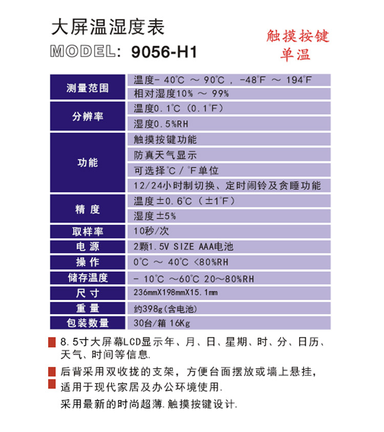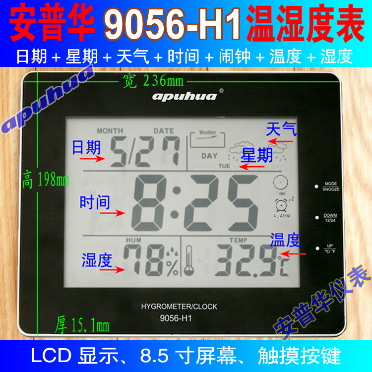 AMPWA 9056-H1 Temperature and Humidity Meter|85-inch large screen temperature and humidity meter|Perpetual calendar|Touch button