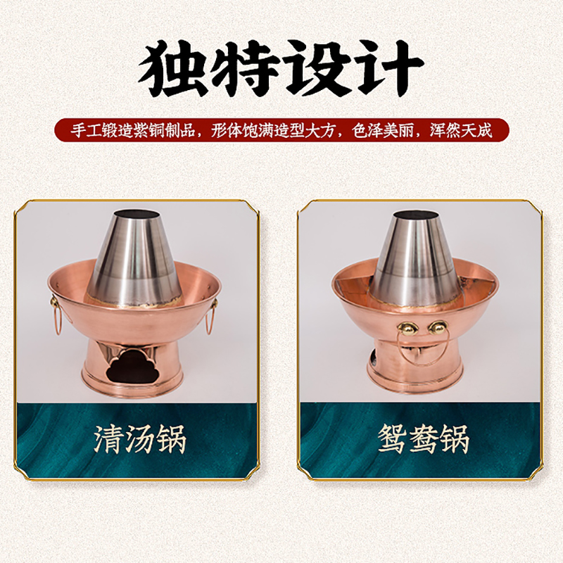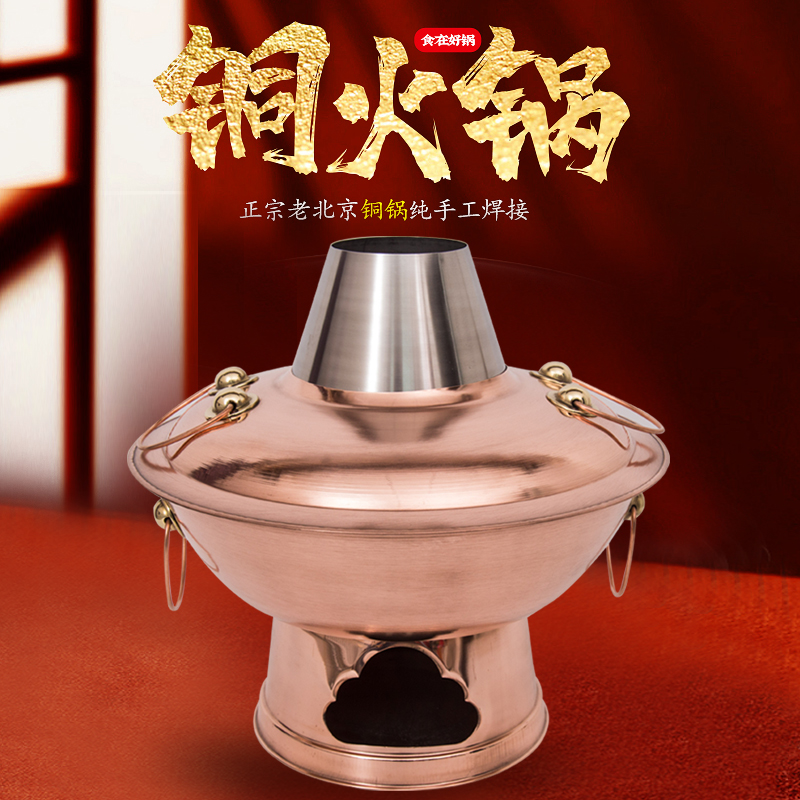 32-40 hotel special thickened red copper charcoal copper hot pot boiling meat copper pot stainless steel core old Beijing copper hot pot