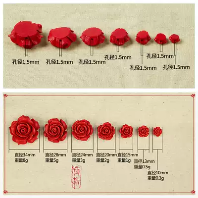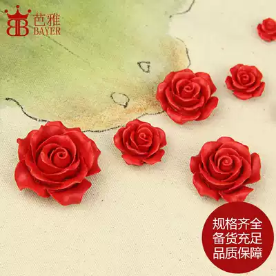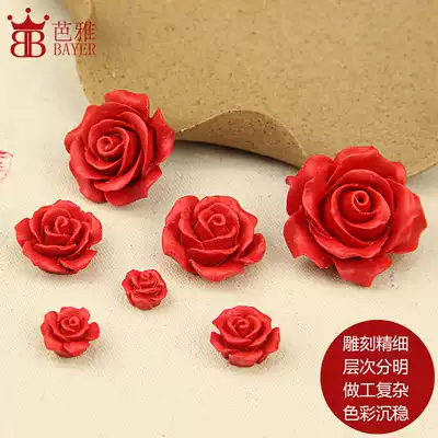 Red cinnabar lacquer carved roses scattered beads handmade ring earrings hand accessories material