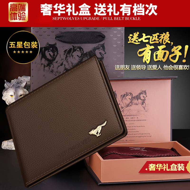 Septwolves men's leather driving license driver's license two-in-one ultra-thin leather cover head layer cowhide card bag male protective cover