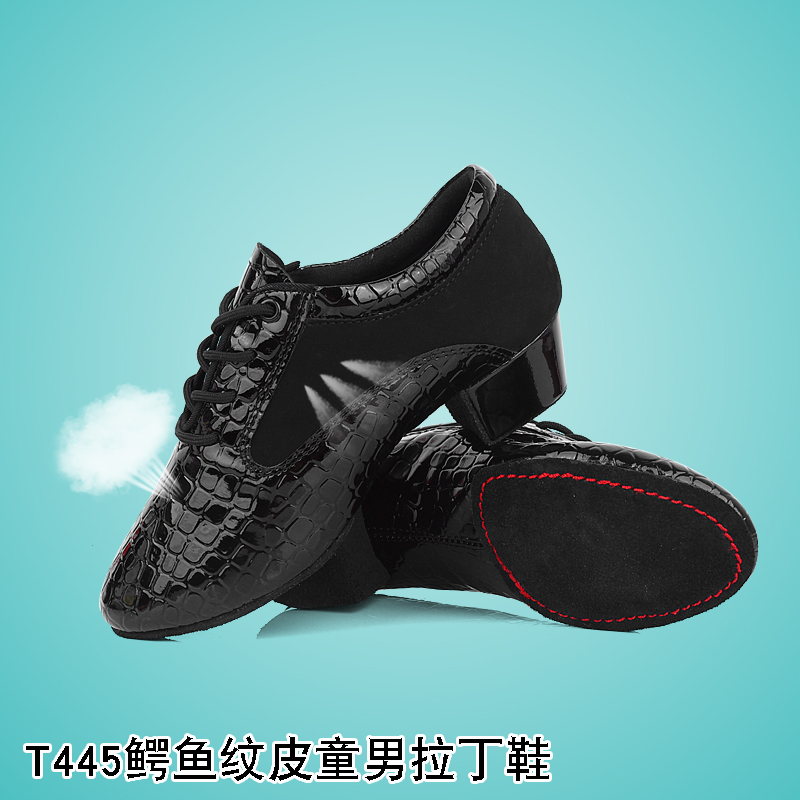 T445 crocodile striped boy Latin shoes (glue bottom) T445 crocodile tatopy leather boy Latin shoes (gross bottom)