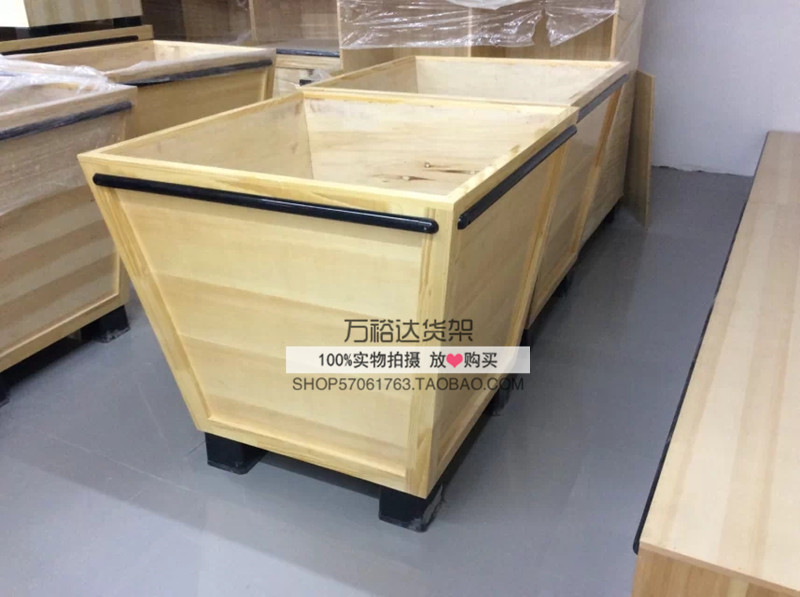 Shopping mall supermarket Wooden rice grain bucket Grain cabinet Solid wood rice bucket box Rice noodle display shelf Support customization