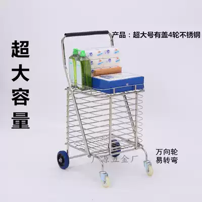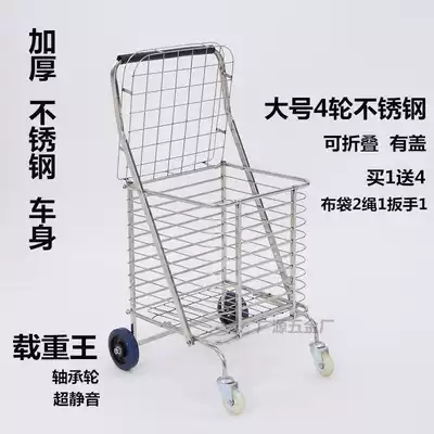 Guangyuan portable shopping cart custom stainless steel car mute new large 4-wheel folding Rod