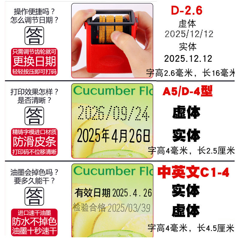 Chen million D4 C1-4 C1-6 C1-8 large food label packaging bag carton production date change printing machine factory date shelf life inkjet printer manual adjustable coding machine