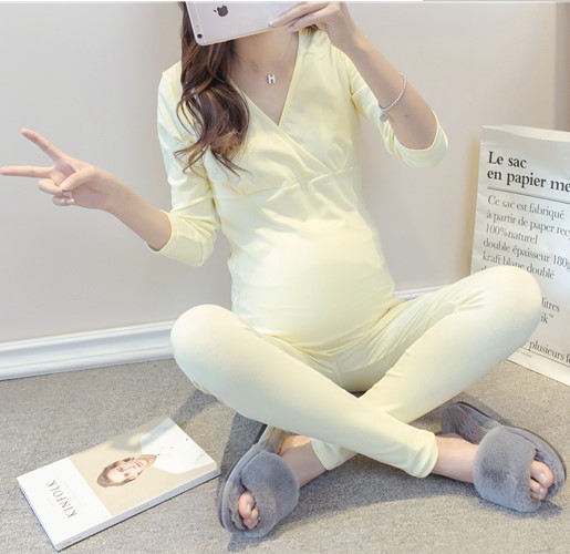 Pregnant women autumn clothes Sanitary pants suit Home clothes Spring and autumn and winter moon clothes Pure cotton postpartum lactation lactation clothes Maternal pajamas
