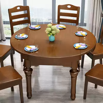 Chinese style simple all solid wood dining table and chair combination folding round table modern table 4 6 8 people 1 38 meters eating table