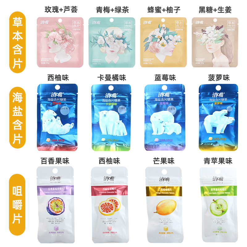 (10 bags of chewable tablets) passion fruit flavor (10 bags of chewable tablets) cool mint flavor (10 bags of chewable tablets) mango flavor (10 bags of chewable tablets) grapefruit flavor (10 bags of chewable tablets)