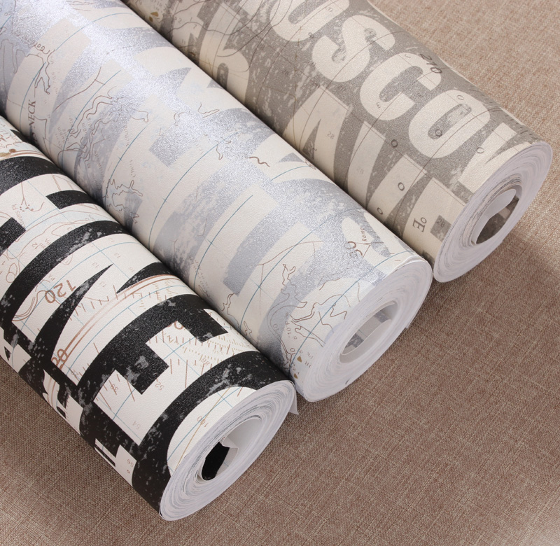 Retro English Alphabet Wallpaper Bar Dining Room Cafe Clothing Shop Wallpaper Personality Fashion Background Wall Black White