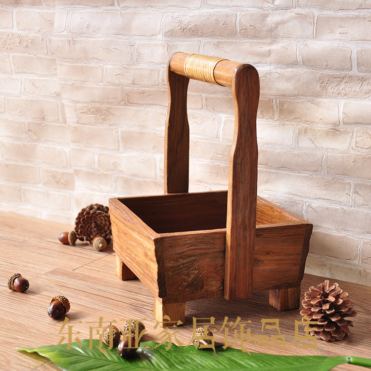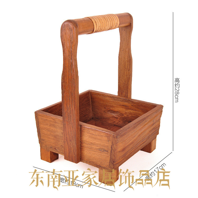 Thai craft gift pendulum decoration wood carving Southeast Asian style Home Furniture Accessories Handmade Solid Wood basket teak Decorative Fruit Basket Small