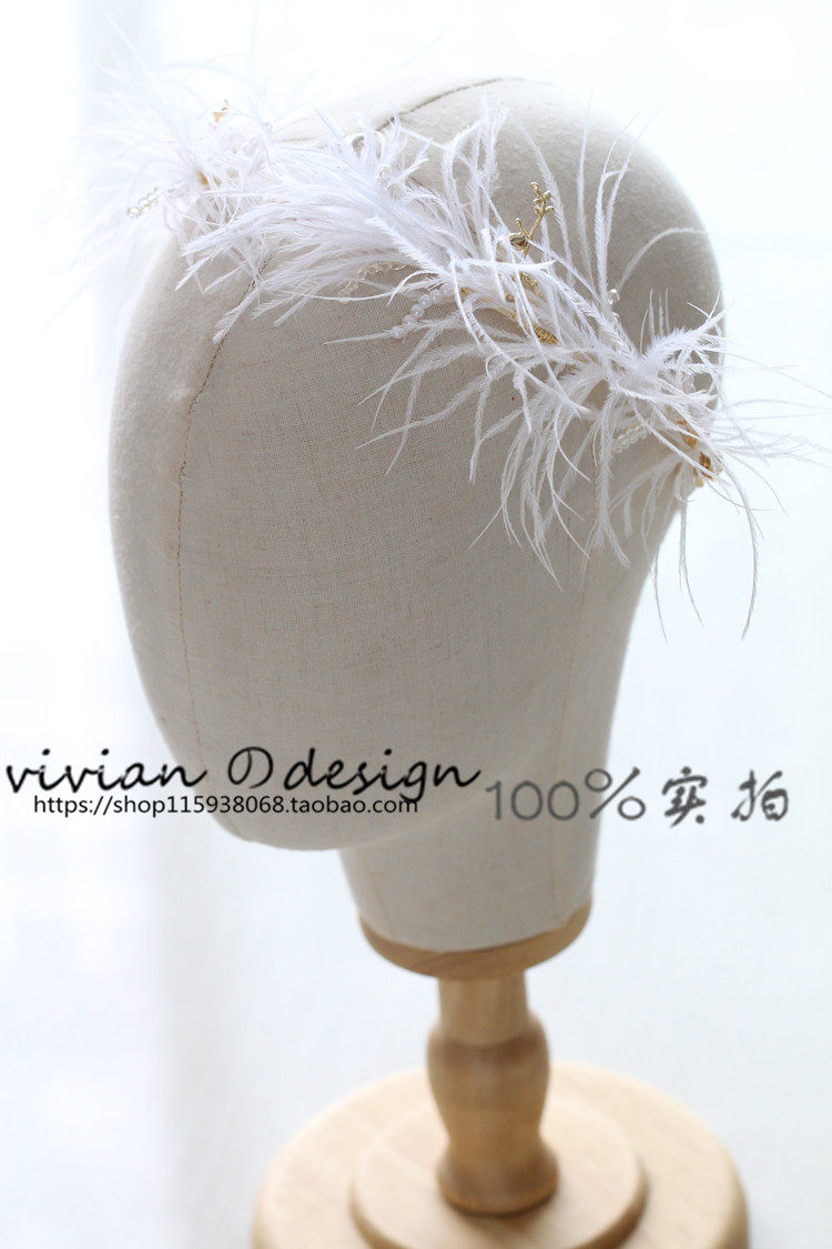 vivian heart-feather hair crown pearl crystal soft crown bridal photography styling for birthday exaggerated hair accessories