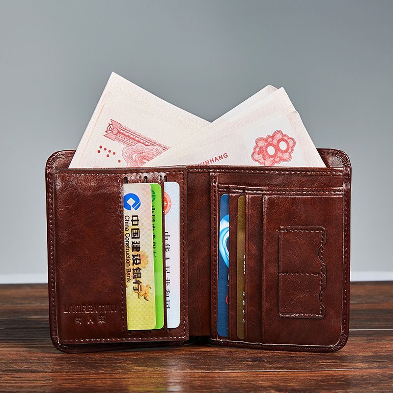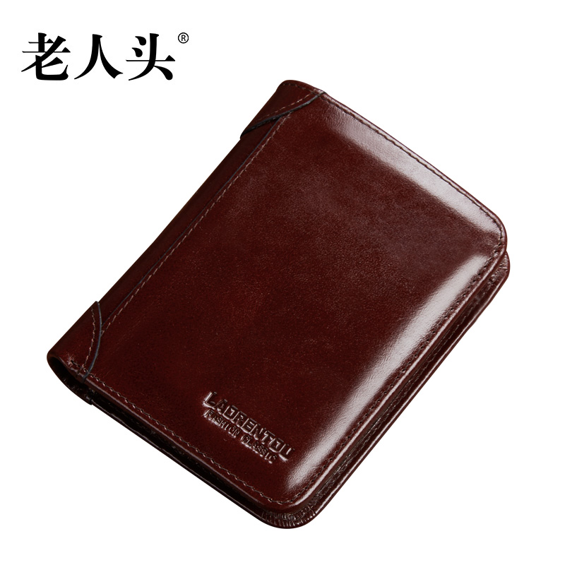 Old man's head wallet men's short section first layer cowhide vertical section leather thin section retro men's driver's license wallet men