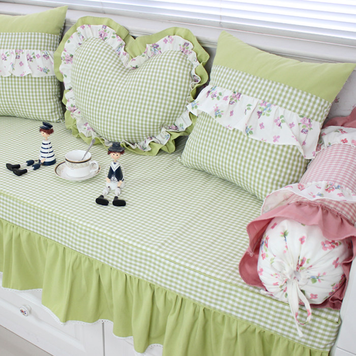 Garden princess green small plaid tatami mat custom-made floating window mat balcony mat sofa mat can be customized