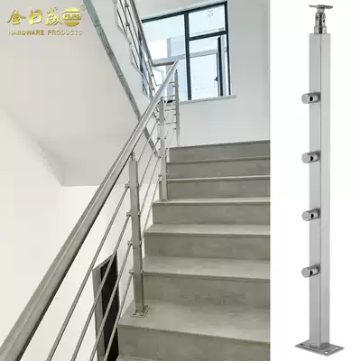 304 stainless steel stair handrail room household square tube through brushed column modern simple balcony guardrail railing
