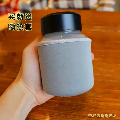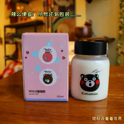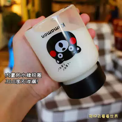 Cute cartoon with Cup Korean glass portable with lid for men and women students Water bottle milk cup creative water Cup