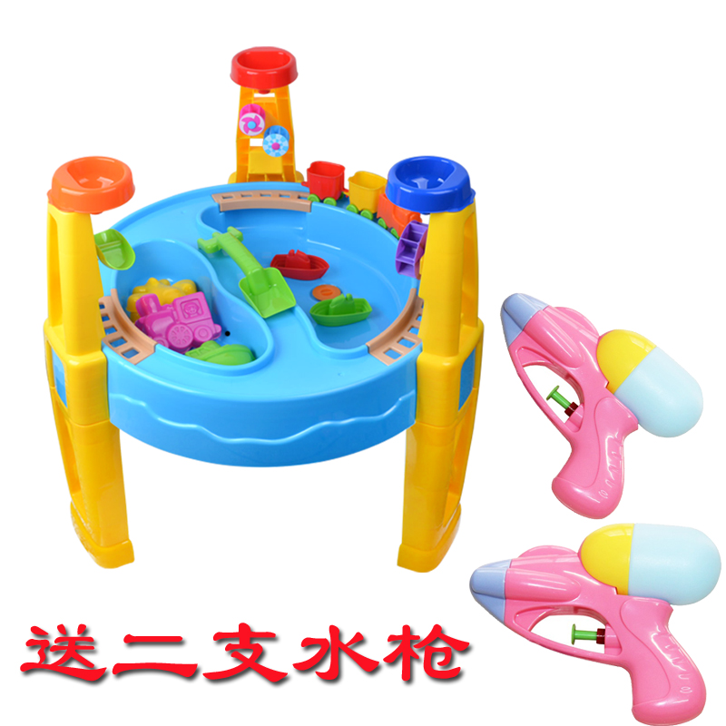 Children's indoor and outdoor sand water table play sand water beach play set table combination with umbrella hourglass windmill