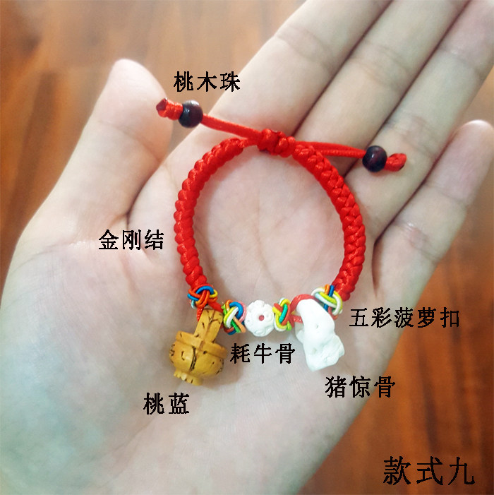 Baby newborn baby child pressure to open up evil anti-scare red rope hand and foot chain Natural peach basket pig bone anklet