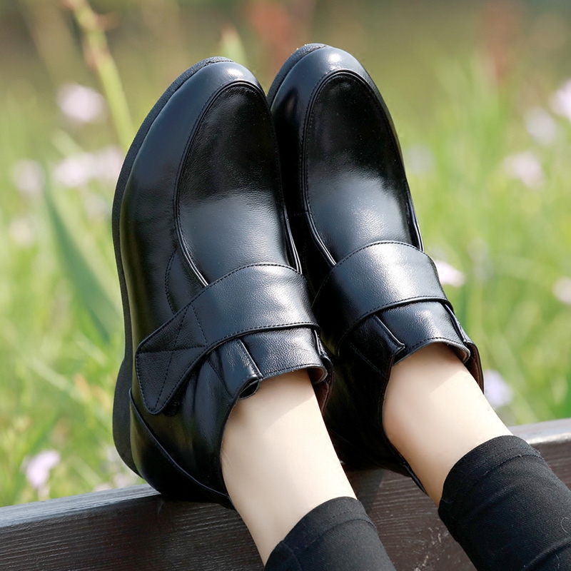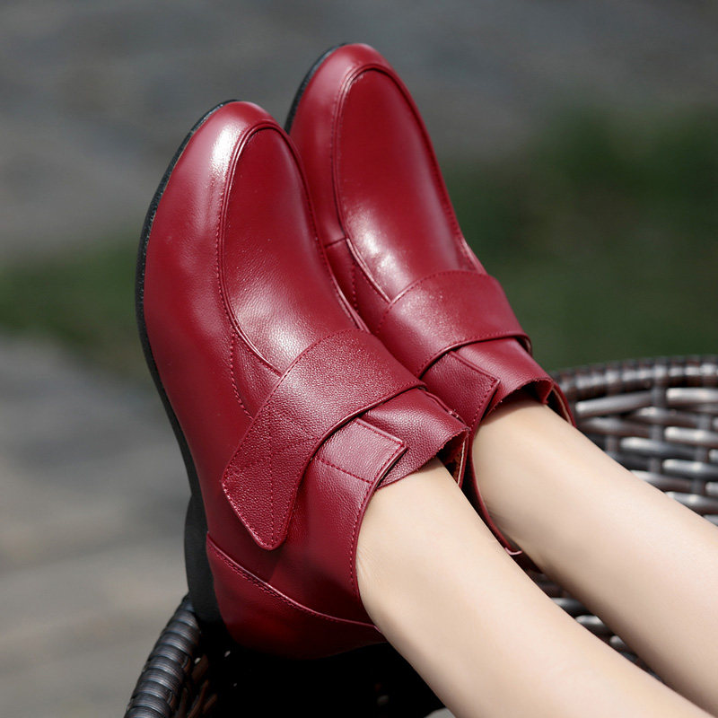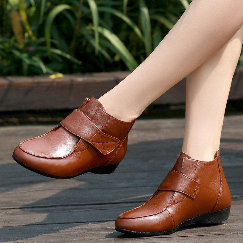 Flat ankle boots women's spring and autumn leather shoes soft bottom all-match mother's shoes autumn and winter shoes plus velvet cotton shoes large size women's shoes