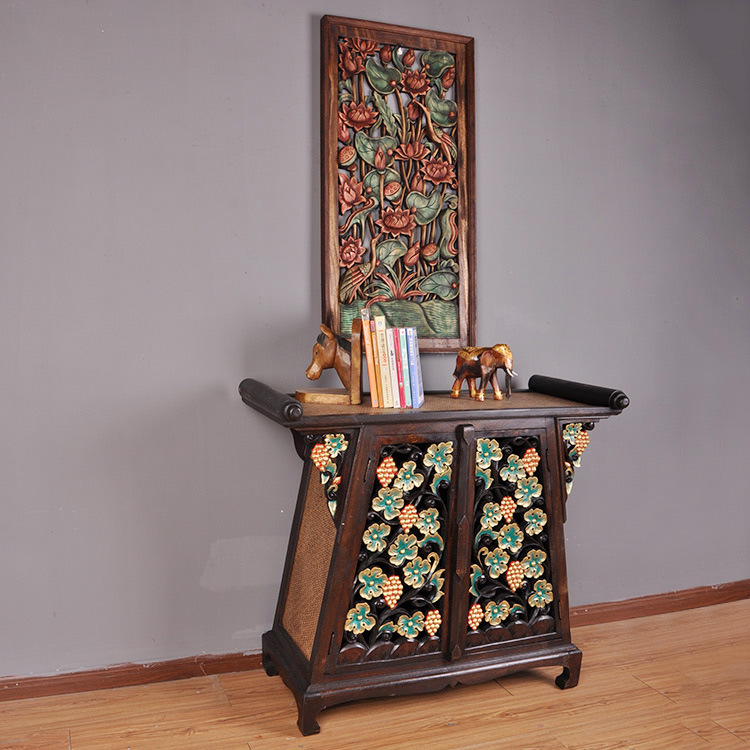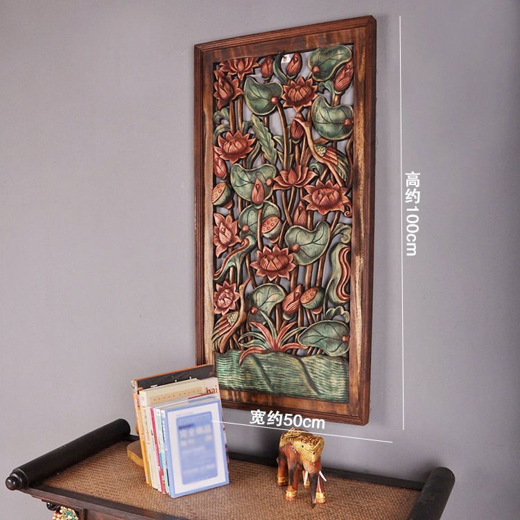 Southeast Asia Crafts Gifts Swing Accessories Solid Wood Hollowed-out Painted Lotus Wood Carvings Hung Plate Thai Style Home Adornment Wall-mounted Wall Hanging