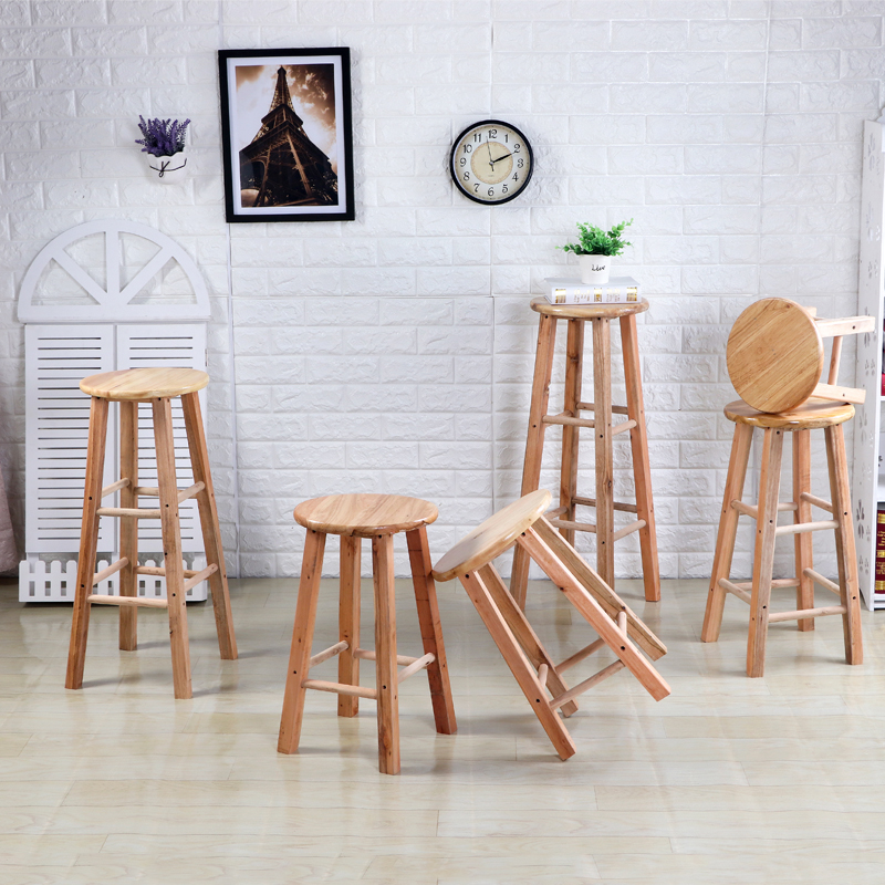 High-footed stool solid wood stool living room changing shoes bar stool tasteless round stool original oak step stool footstool 45 80cm