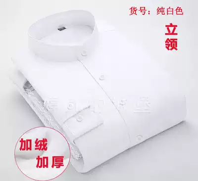 Autumn and winter thick men's stand collar plus velvet shirt men's long sleeve hot clothes youth tunic round neck thick inch shirt