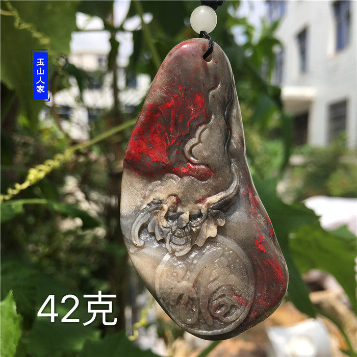 Changhua chicken blood stone horn jelly pendant men's pendant jade frozen bottom collection gift from the dai origin direct sales fidelity