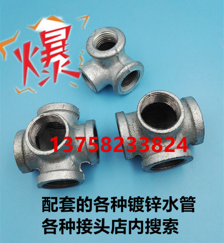 Galvanized stereo 5 - Glum 4 - min 6 - min vintage industrial wind shelves four - way DN15 20 galvanized pipe joints