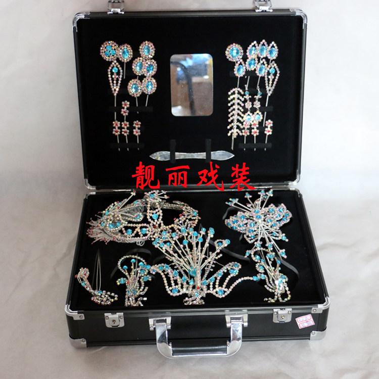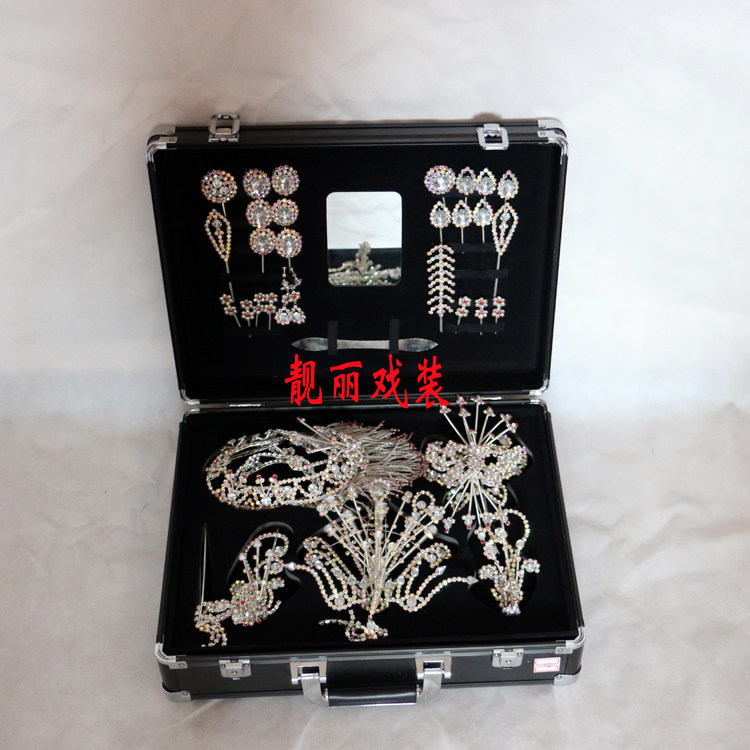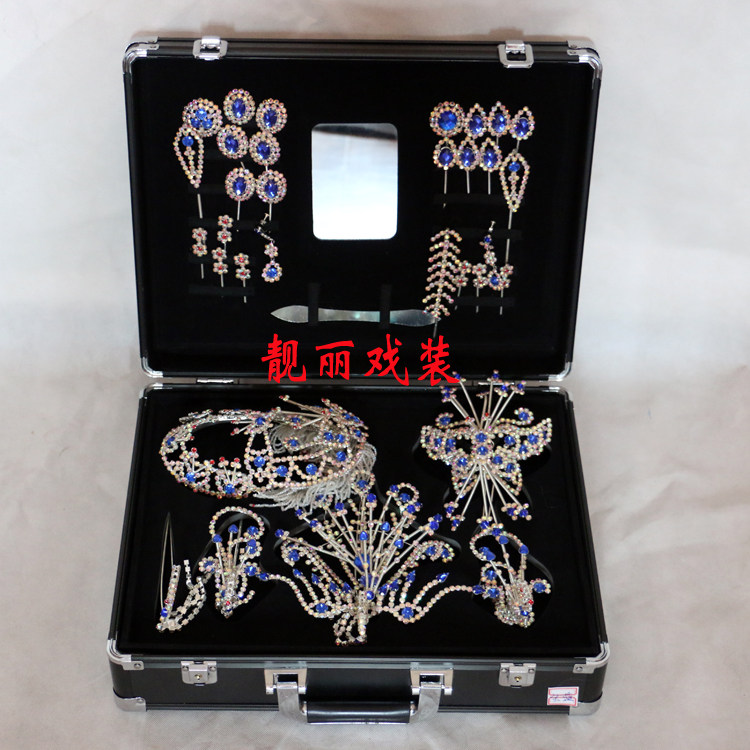 High-end opera water drill head face drama Baotou Hard head face Tsing Yi Flower denier Miss Twin Light Full Set Headwear