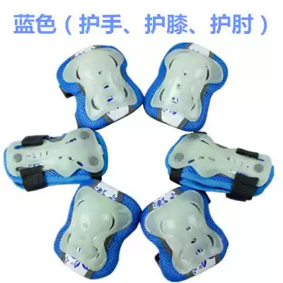 A pair of pink lake blue wrist guards (color remarks) one pair of knee pads (color remarks) elbow guards (color remarks)