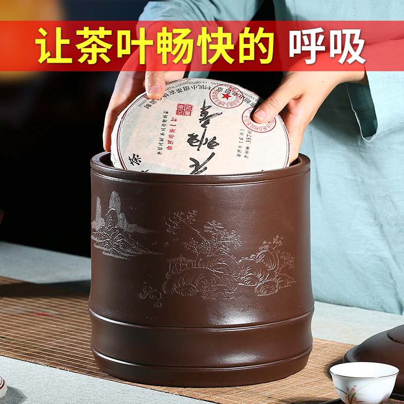 Large purple sand tea pot seven cakes Pu'er sealed storage pot wake tea pot tea pot tea barrel Yixing raw ore handmade