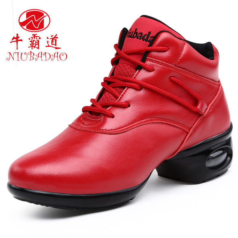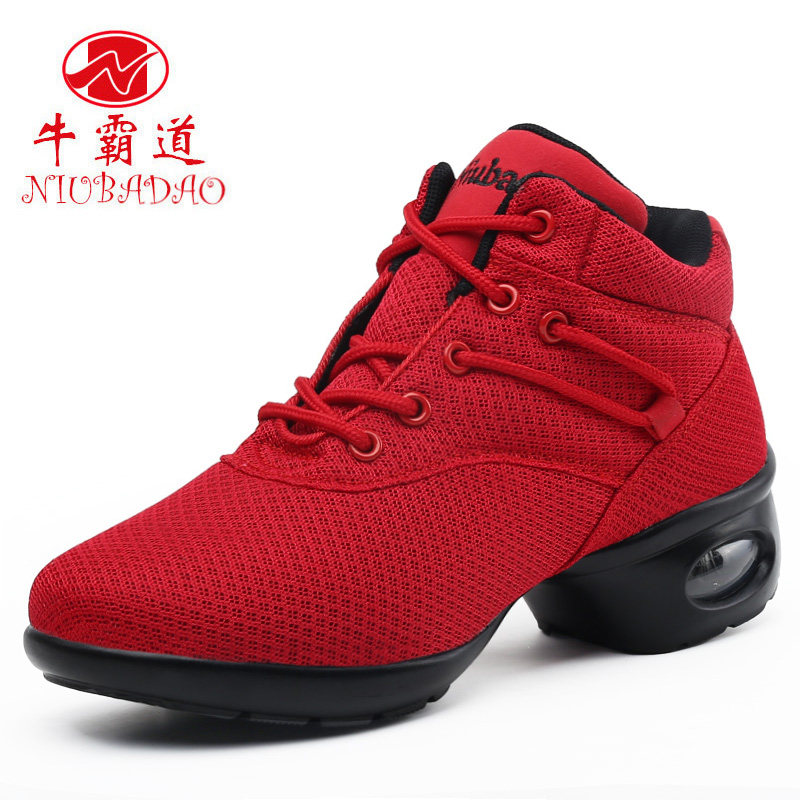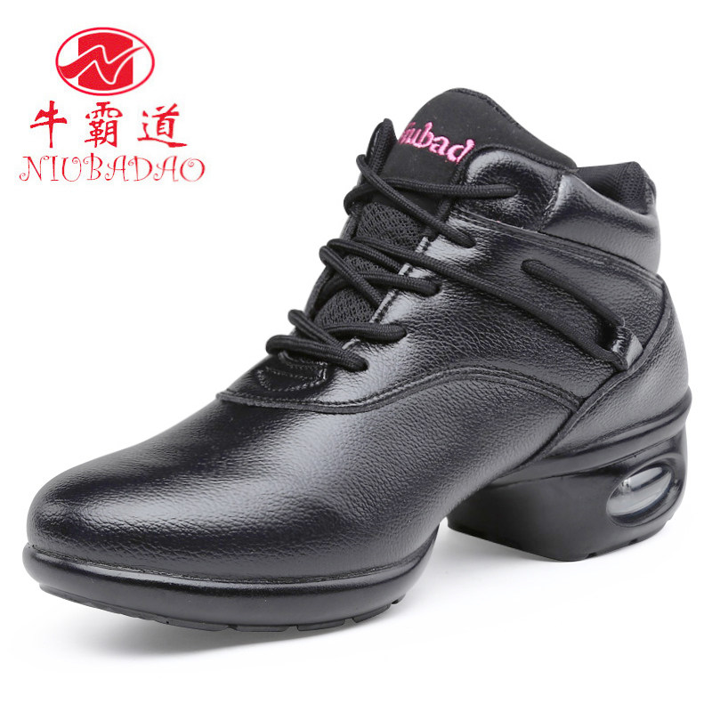 Autumn Winter Square Dance Shoes with Girls Netface Genuine Leather Dance Shoes Adults Soft Base Old Adults Ballroom Dancing Shoes