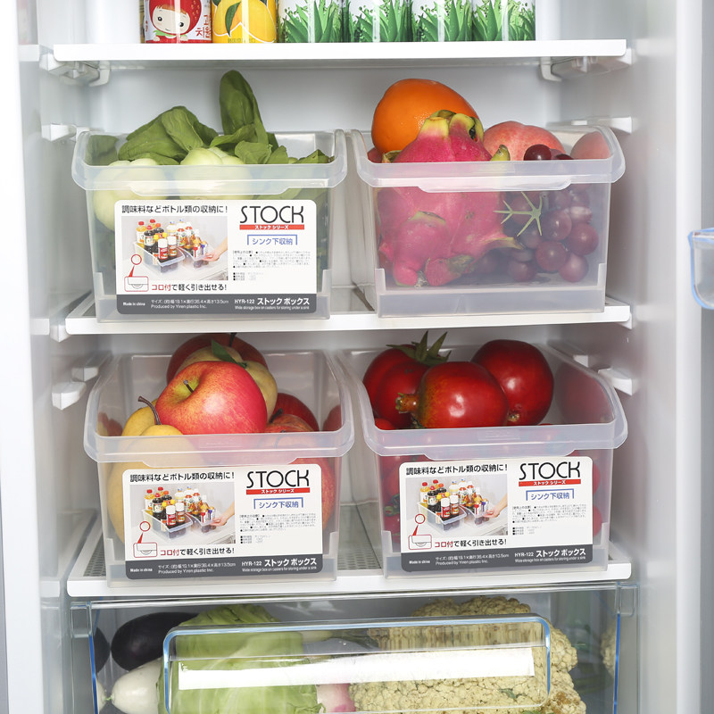 Refrigerator fruit and vegetable fresh-keeping storage box plastic rectangular food storage box transparent pulley freezer storage basket