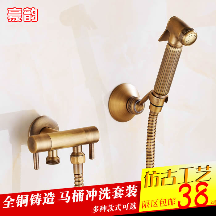 Antique all-copper pressurized shower head woman washer cleanser retro high-pressure water gun toilet spray gun flusher set