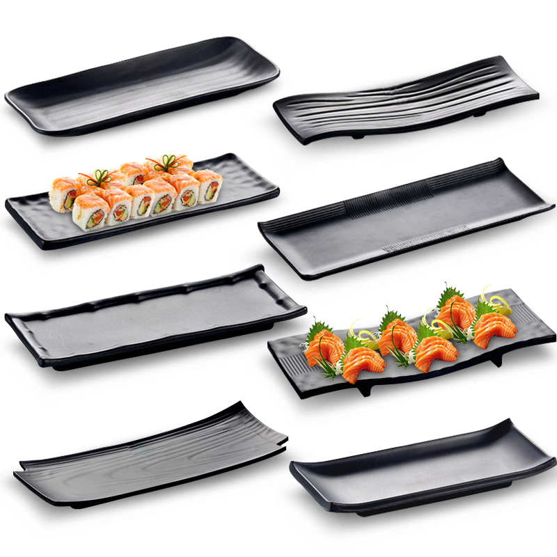 Black imitation porcelain plastic plate rectangular day style sushi meiamine tableware barbecue hotpot creative saucer dish cool dish