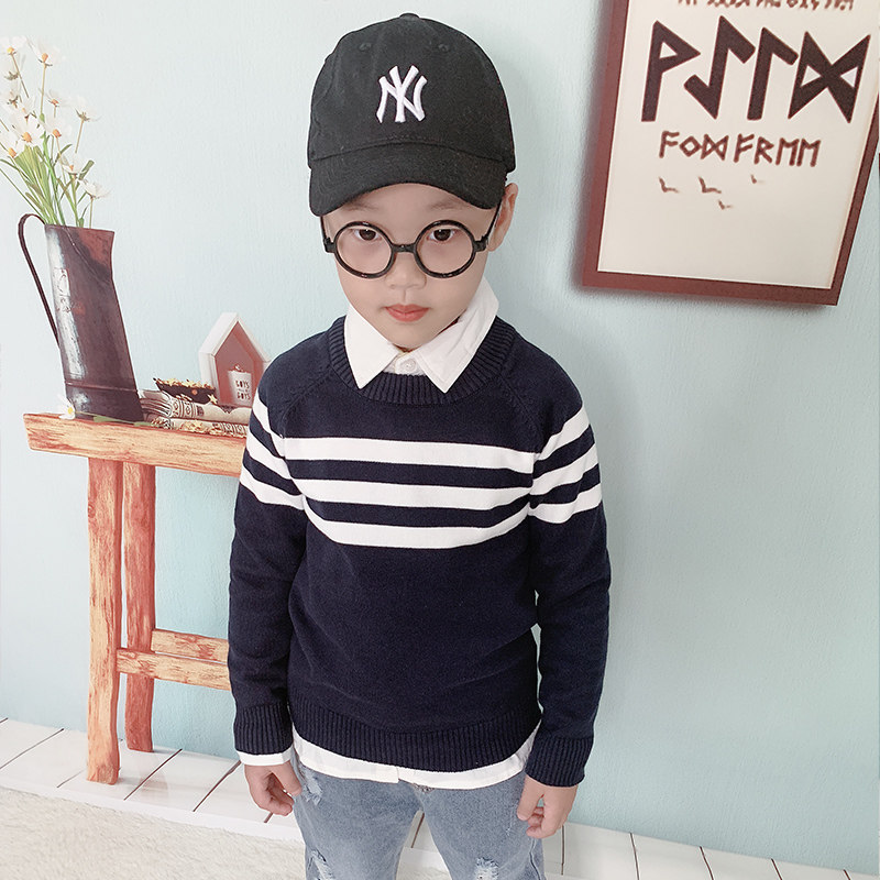 Boy children's sweater thin cotton baby sweater Korean version of autumn Foreign school children's clothing Boy sweater pullover tide