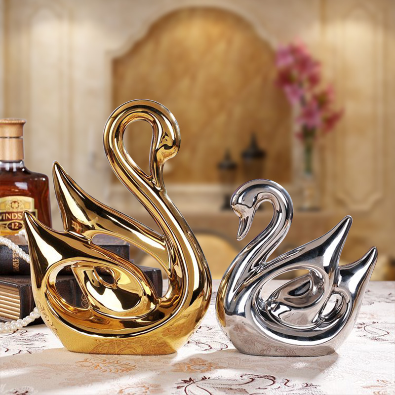 Creative ceramic crafts wedding gifts living room TV cabinet ornaments modern home decorations electroplating Swan