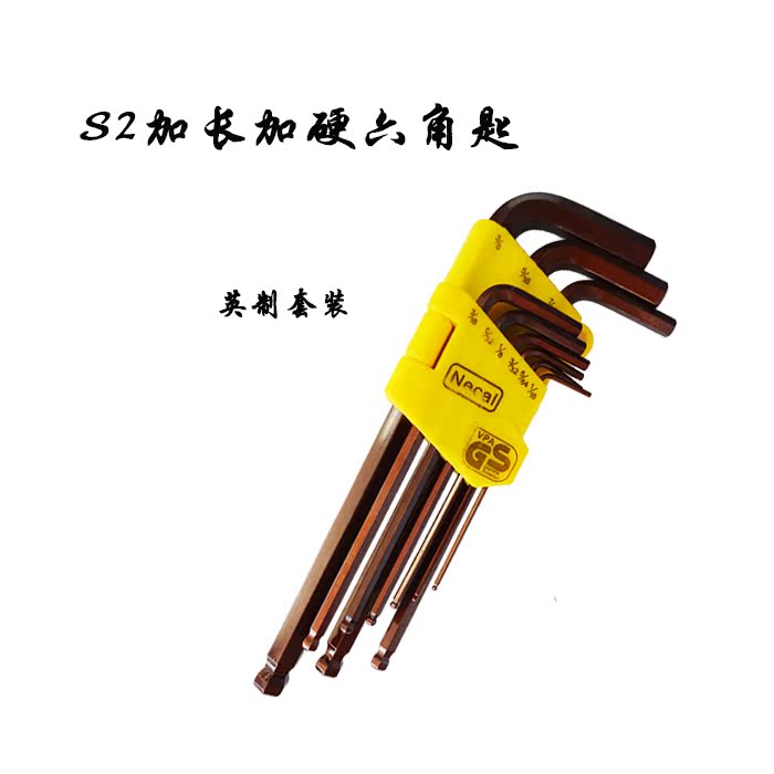 Inner hexagonal wrench Public British 9 piece Set Six - corners S2 lengthening and hardened ball head six - corners for life