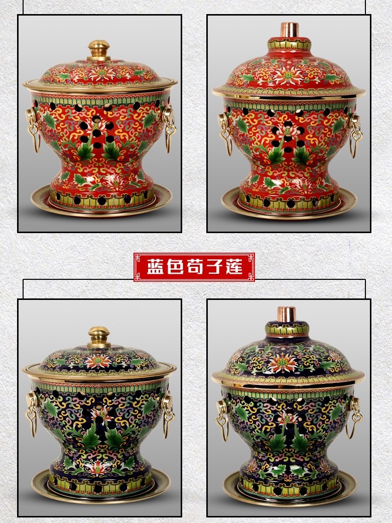 Cloisonne red copper hot pot burns environmental protection oil alcohol one person share meal small hot pot single person enamel pure red copper fire boiler