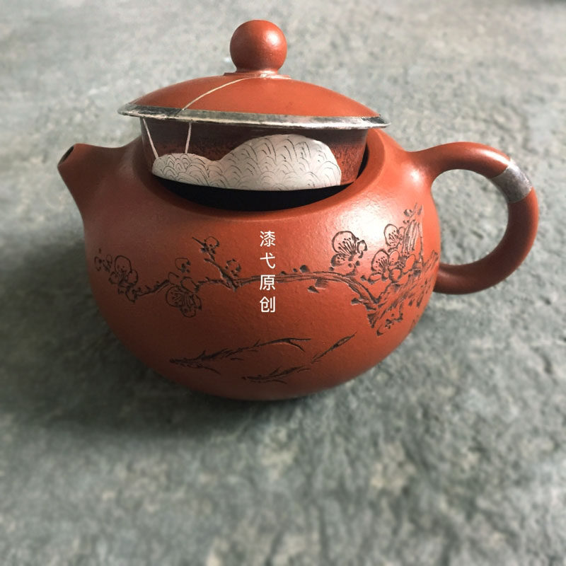 Hangzhou Jinfu lacquer craftsman handmade tea set Purple sand pot Ceramic jade beeswax bamboo repair special recommendation