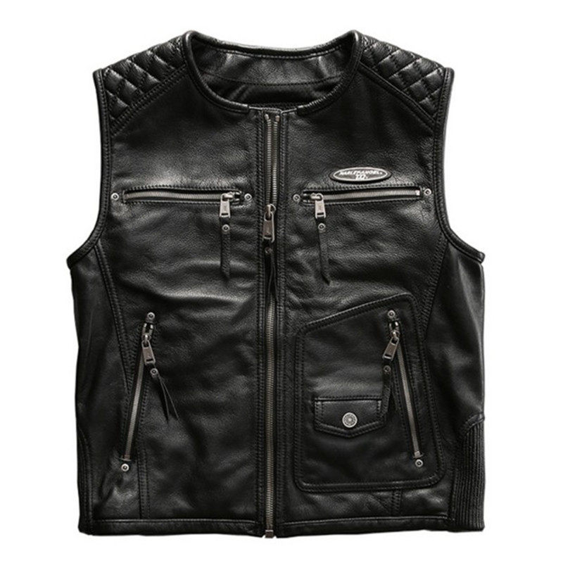 Haremen's leather waistcoat Leather Waistcoat Multi-Pocket Thickened Bull Leather Locomotive Suit Waistcoat Leather Vest