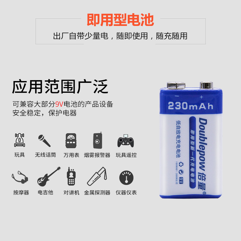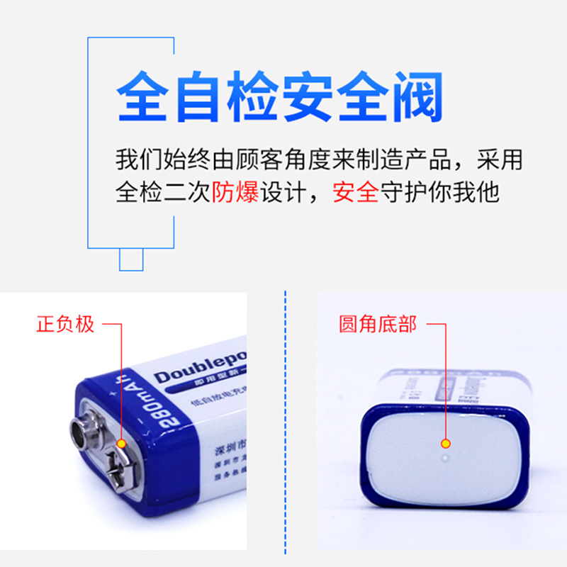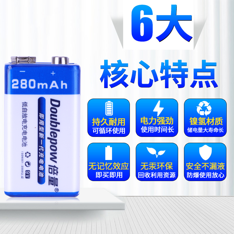 Double-volume 9V battery nine-volt rechargeable battery square square 6F22 rechargeable Ni-MH 280 mAh multimeter